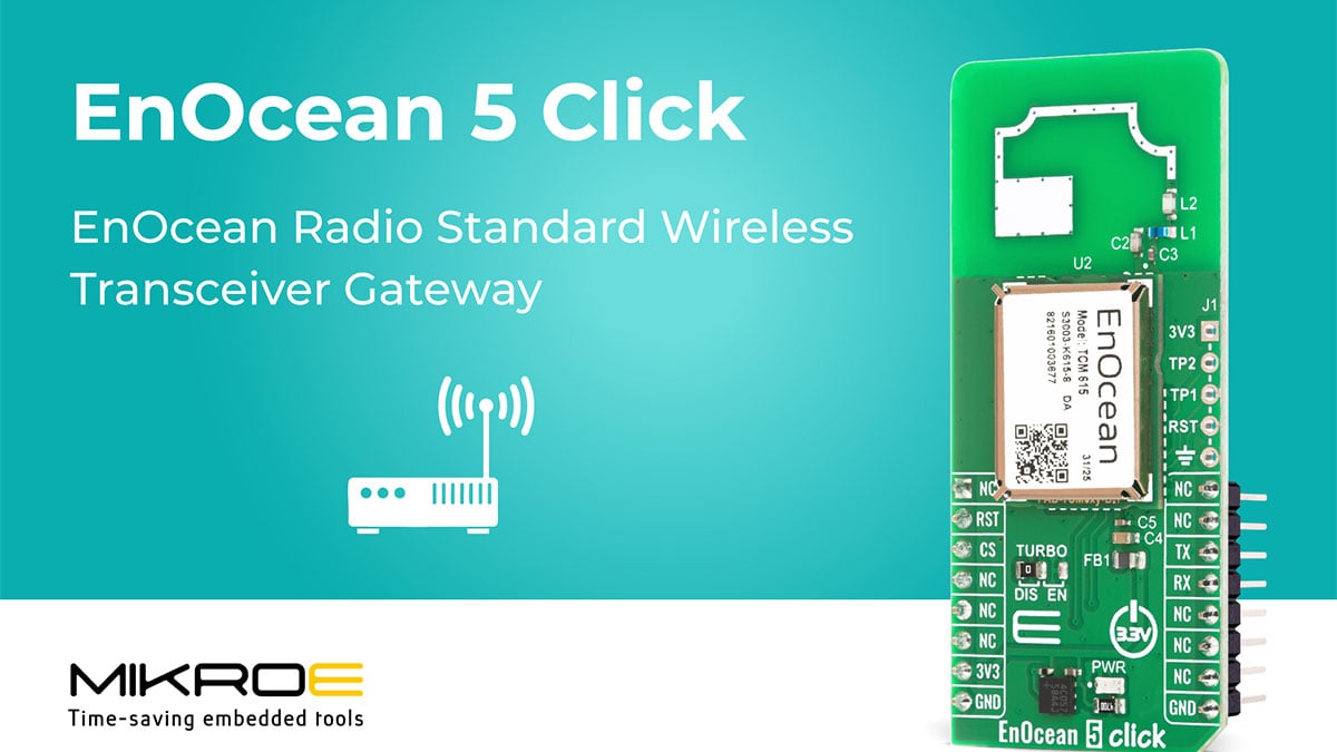 Comments Nebojsa Matic, CEO of MIKROE: “This new Click board is ideal for developing energy-efficient dimmers, relays, and shutter controllers that rely on self-powered EnOcean switches. It is part of our 260+ strong family of wireless connectivity Click boards and over 850 projects – with working code – featuring the EnOcean 5 Click can be found on MIKROE’s embedded projects platform, EmbeddedWiki.”